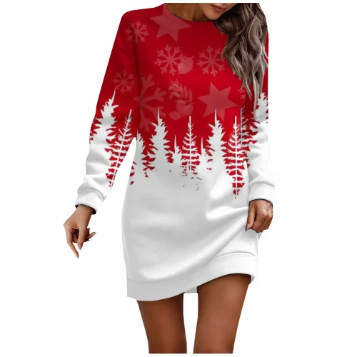 Women’s Ugly Christmas Little Snowflake Knitted Dress And Christmas Tree Sweater With Bells On Chest